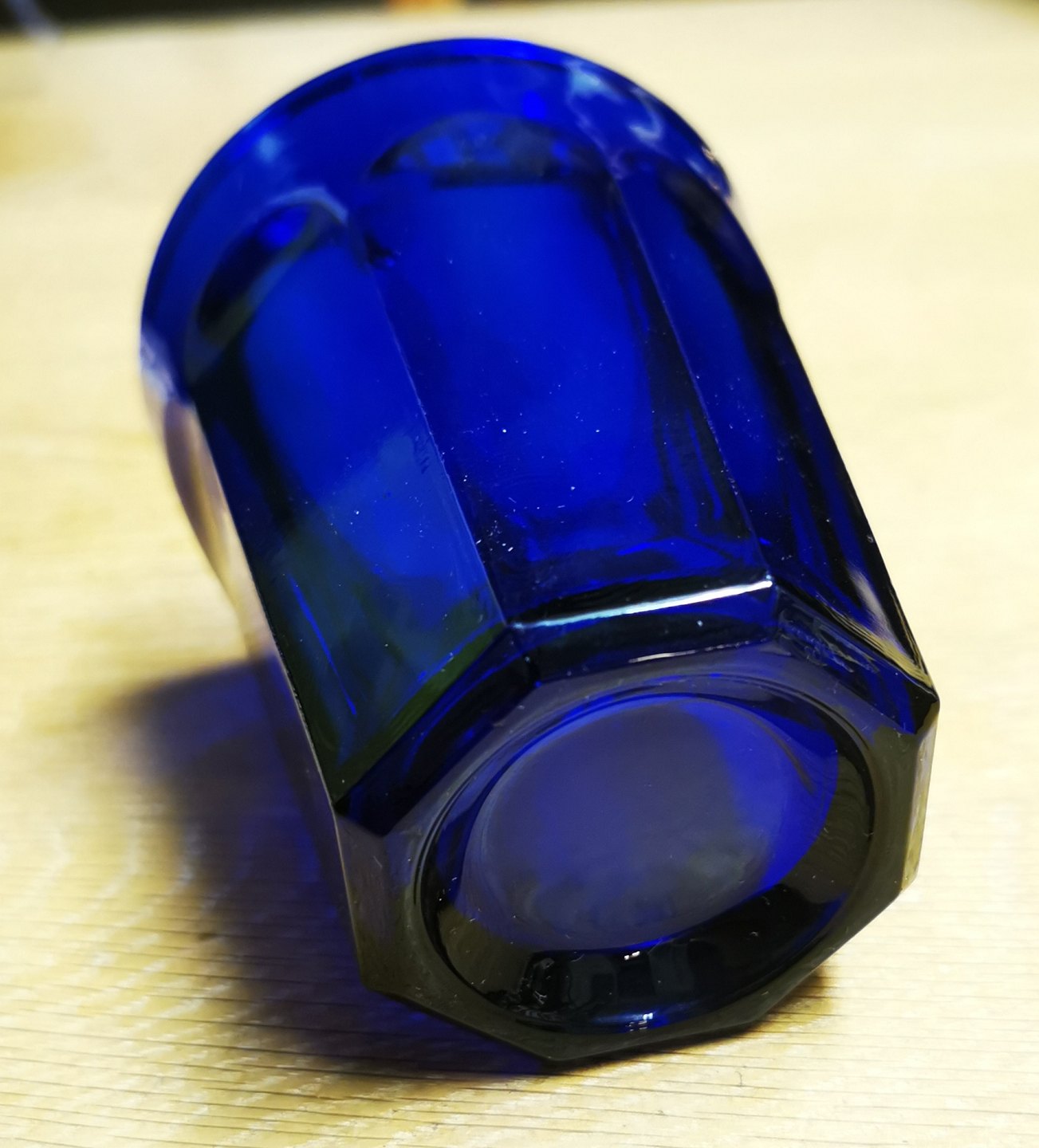 Mælkekop i blåt glas