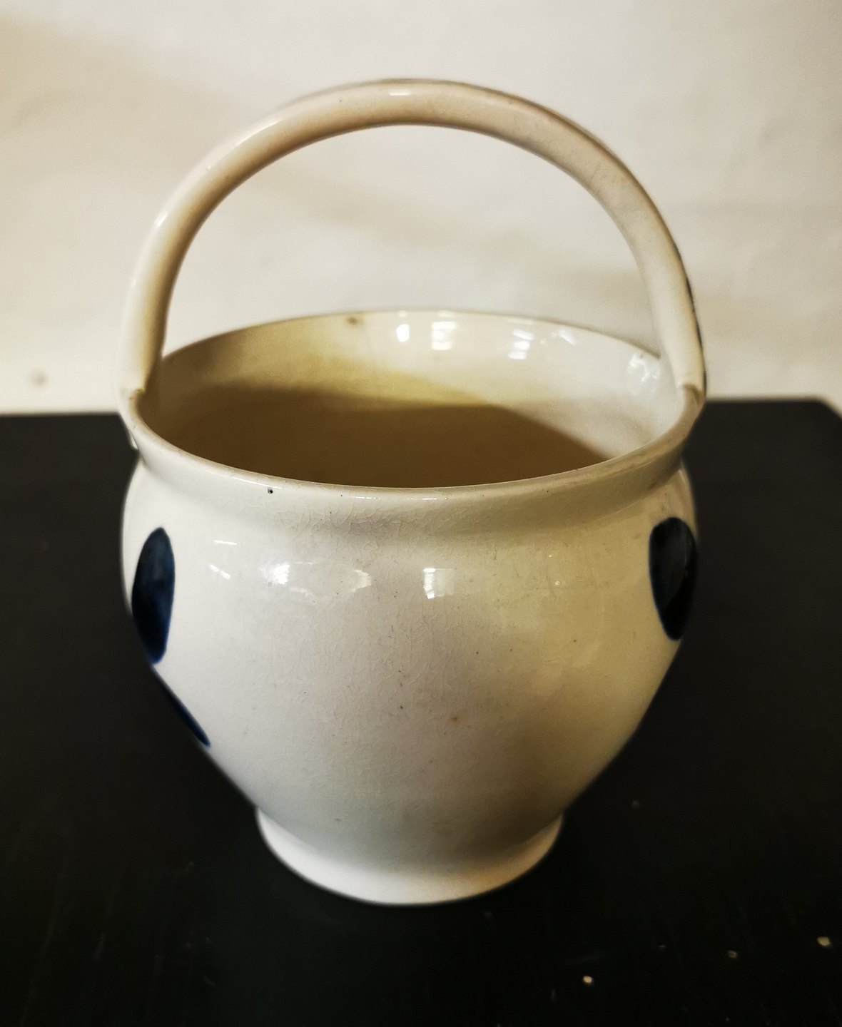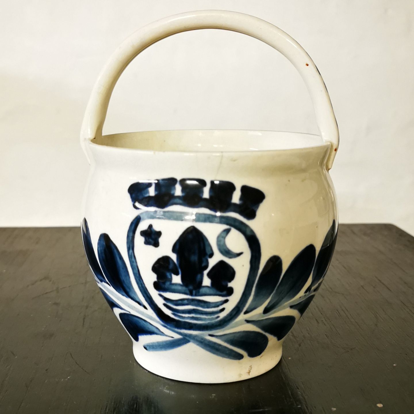 "Barselspotte" fra Aluminia fabrikken med København kommunes byvåben. Har lille revne på den ene side øverst. Ellers ingen skader eller reparationer. Fabriksmærket på bunden. H. 17 cm.