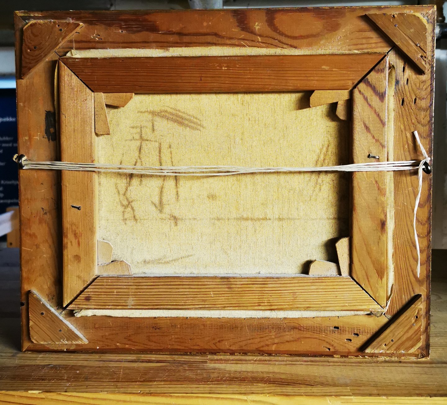 Marine maleri i guldramme. Signeret i nederste højre side. Mål: 27 x 31 cm
