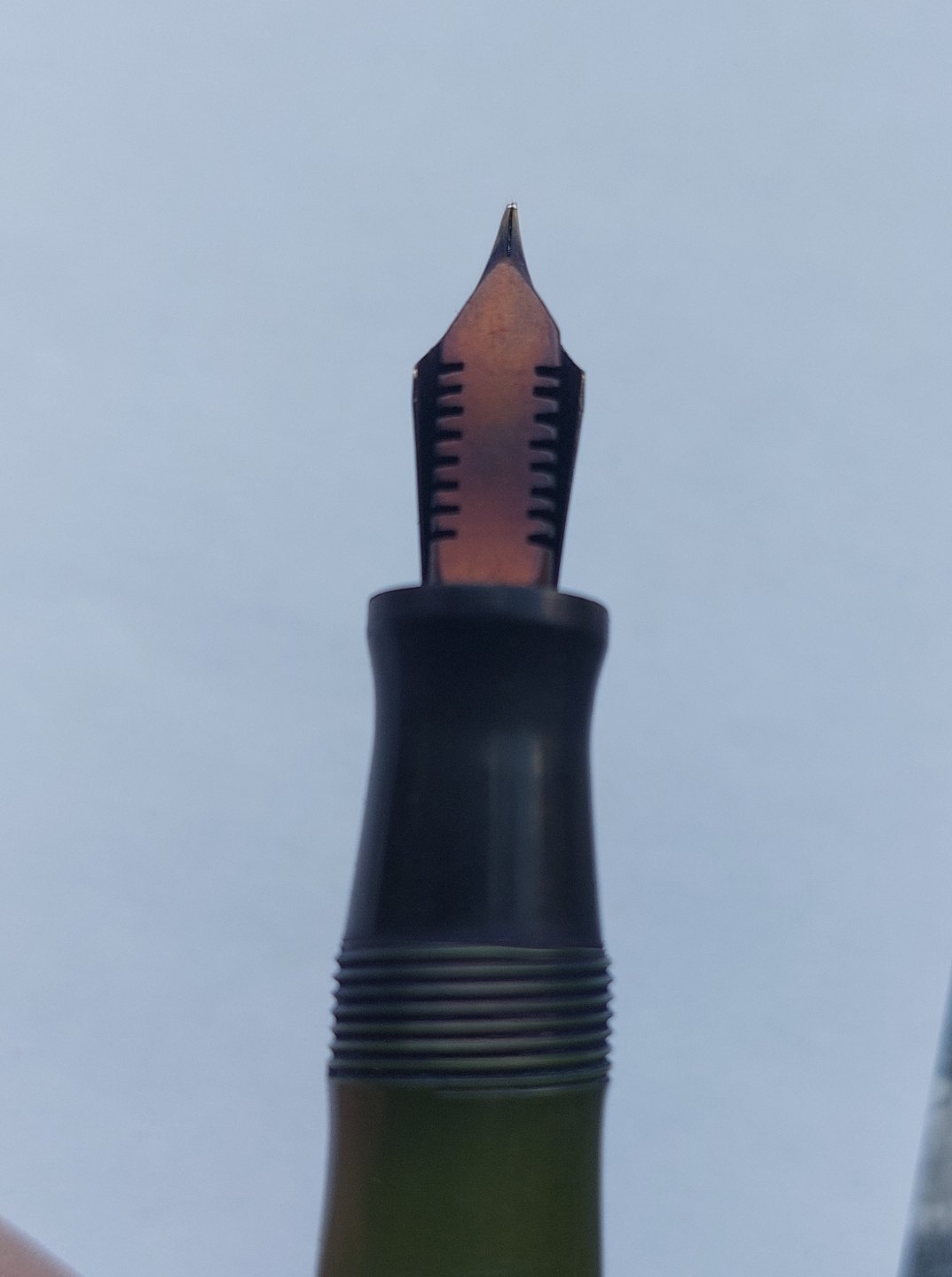 Påfyldning af blæk. Den gamle gummisæk, der sidder i denne fyldepen, fungerer ikke. Der skal indsættes ny gummisæk før end fyldepenne kan optage blæk påny og skrive igen. Der kan indsættes ny gummisæk ved betaling af d.kr. 200,-