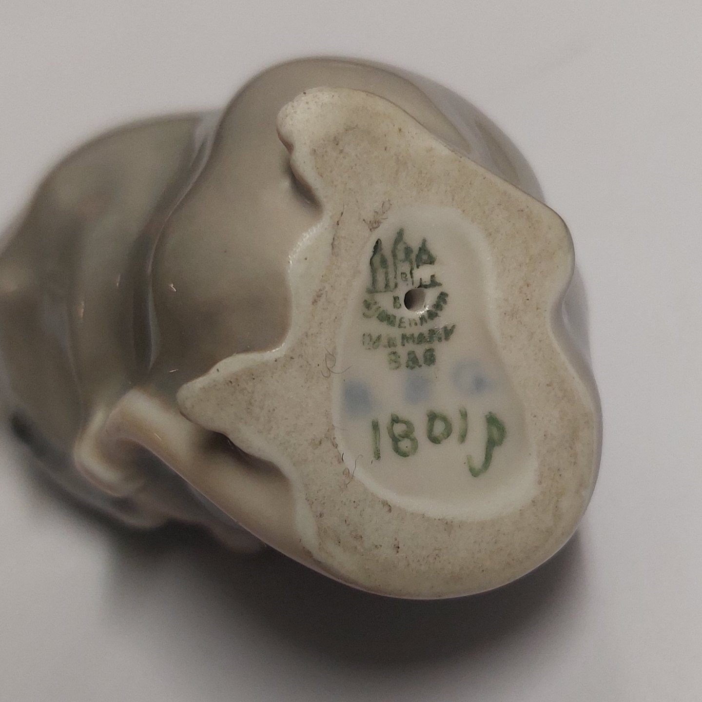 Figur af mus i porcelæn fra Bing & Grøndahl. I god stand uden skader eller reparationer. 1. Sortering. Fabriksmærket på bunden. Modelnummer 1801. H. 5 cm