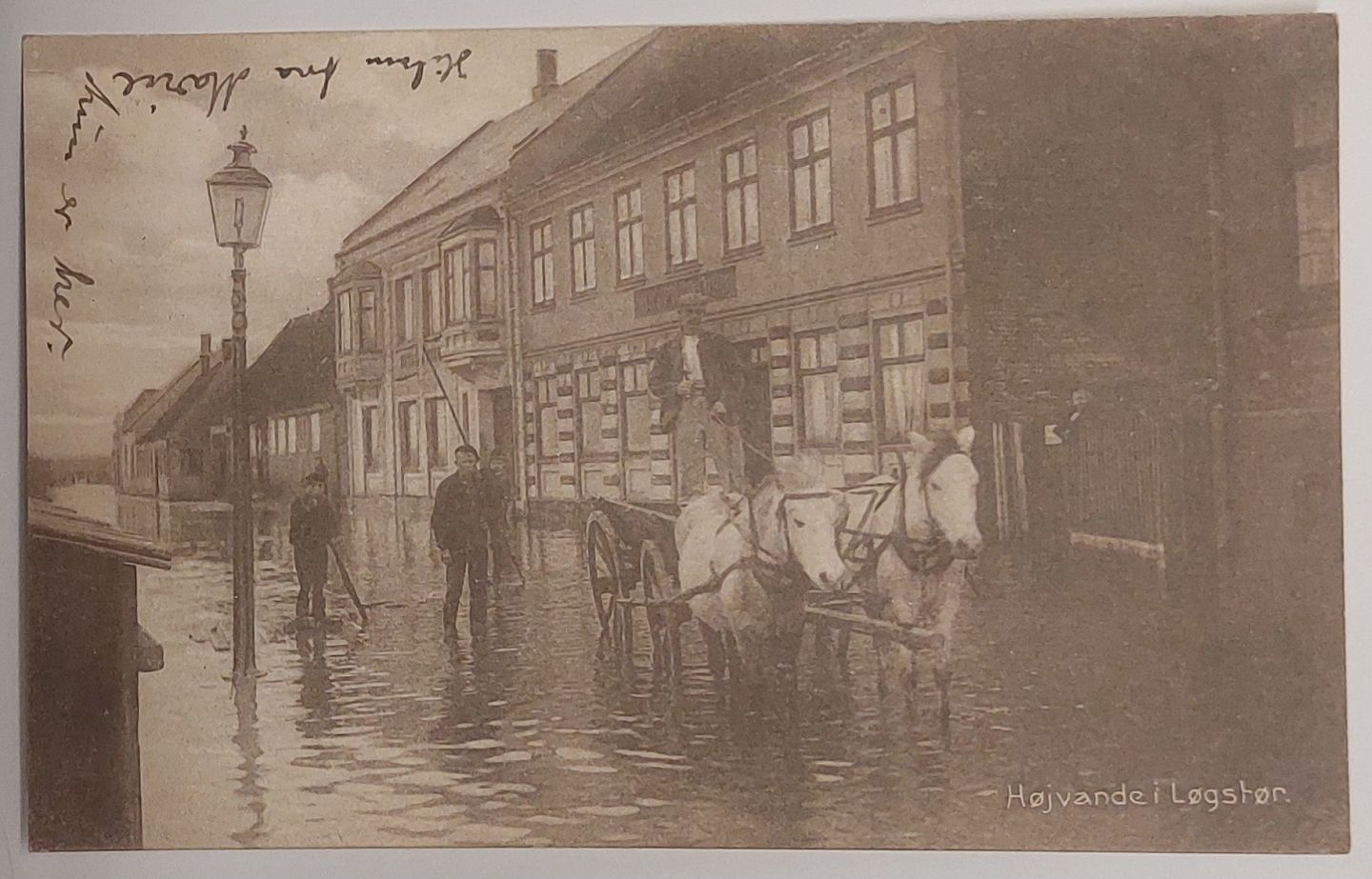 Postkort: Motiv med højvande i Løgstør. Annulleret LØGSTØR i 1914. I god stand.