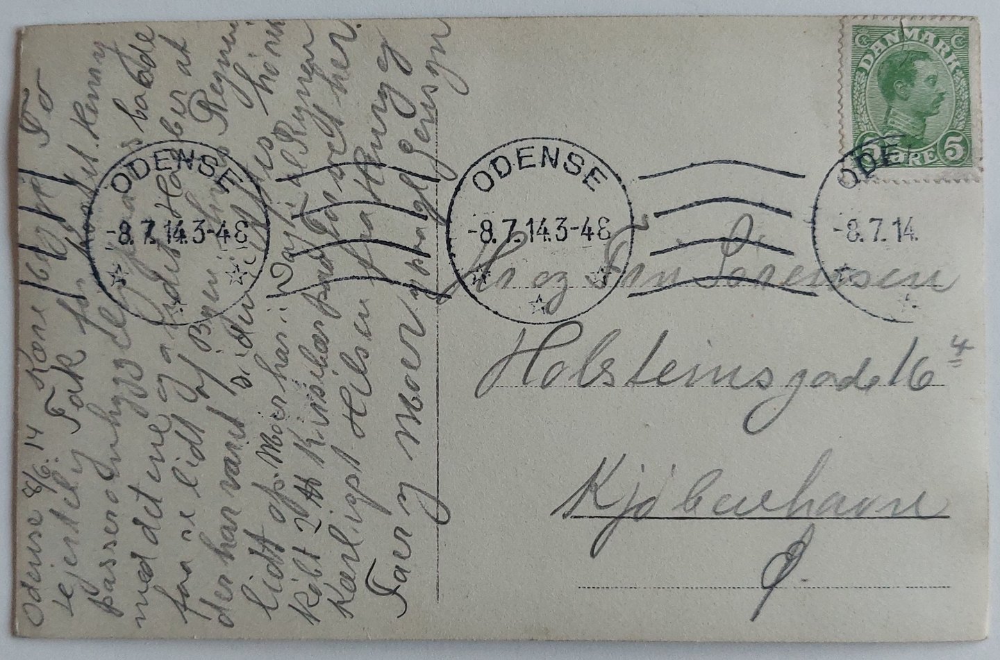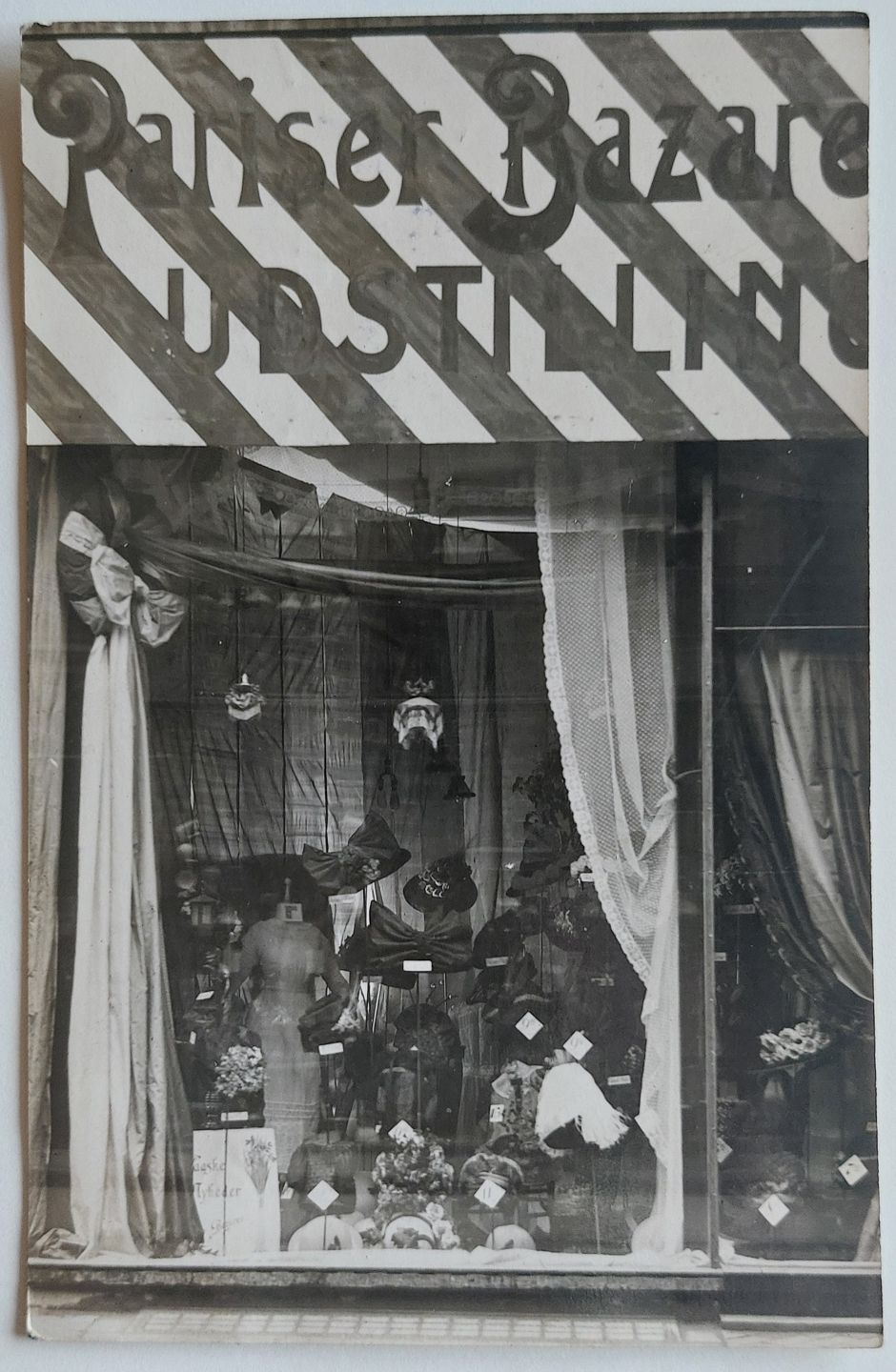 Fotopostkort: Butiksfacade Pariser Bazare Udstilling. Annulleret ODENSE i 1914. I god stand.