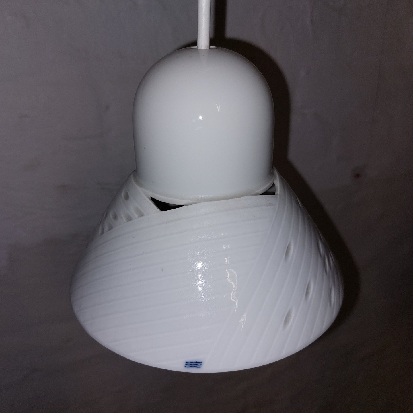Royal Copenhagen:.Pendel i porcelæn fra serien Luciana designet af Anne Marie Trolle. Fremstår I god stand uden skader eller reparationer. Fabriksmærket udenvendigt som det fremgår af foto. Mål: H. 12,5 cm Diameter på 14,5 cm