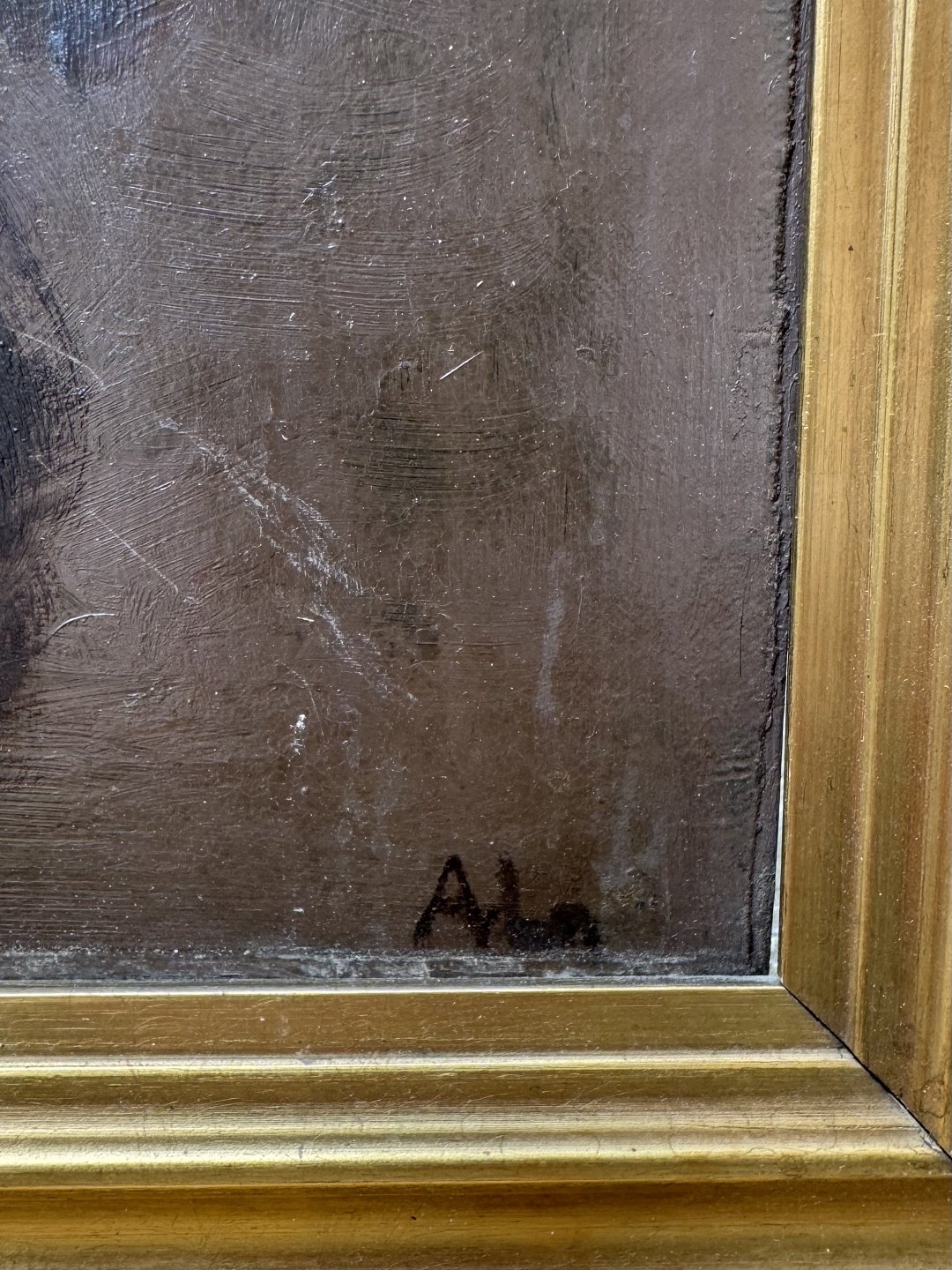Oil painting on carton. Portrait of a dog. Painted by Niels Aagaard Lytzen (1826-1890). In good condition. Signed In the bottom right corner. Dimensions: 35 x 40 cm