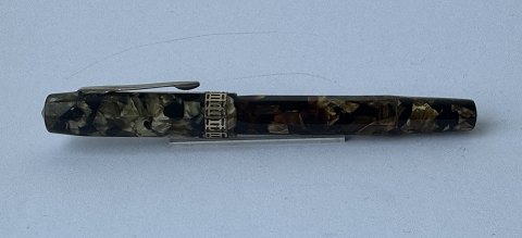 Grøn marmoreret Osmia A. W. Faber-Castell 540. Piston filler. Fremstår i flot stand. Ingen skader eller reparationer. Påfyldningsmekanismen skal dog laves før end fyldepennen igen kan optage blæk og skrive igen. Alle dele originale Osmia inklusiv en flot 14 karat guldspids. Mål: 12,5 cm