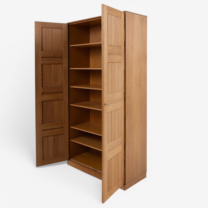 Højt skab i massiv eg m. tilhørende sokkel.