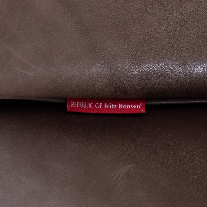 AJ 3316 - 'The Egg' armchair with stool in original dark brown Elegance leather and brown suede on a bronze frame. Anniversary model from 2008. Number 489/999.