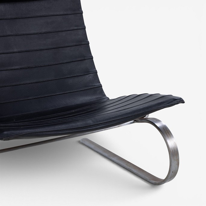PK 20 - Armchair in original black leather with neck cushion and spring steel frame. Designed in 1968.
