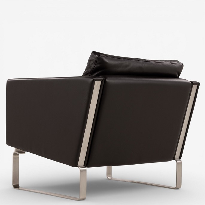 CH 101 - Lænestol i mørkebrunt, patineret semi-anilinlæder med stel i stål. Mærket fra producent.