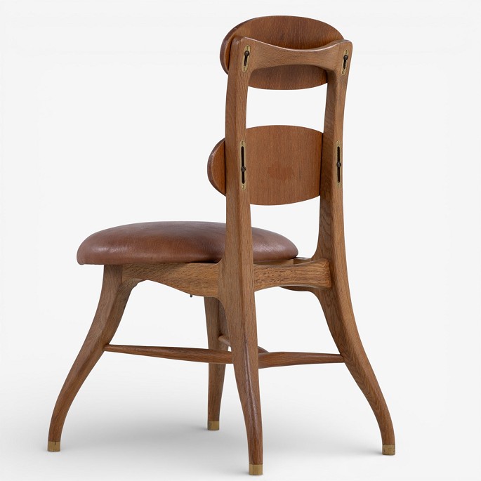 'Musikerstol' med stel i patineret egetræ og justerbart sæde og ryg i patineret nigerskind. Formgivet i 1942.