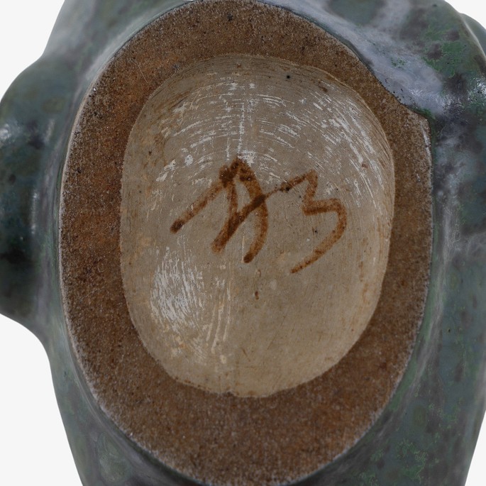 Lille fisk i stentøj med blågrøn glasur. Signeret.