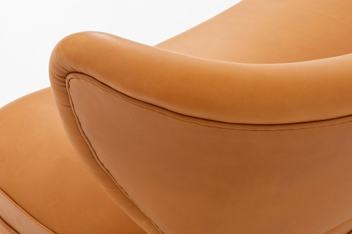 Nybetrukket sofa i Shade Cognac-læder med ben i bejdset bøg