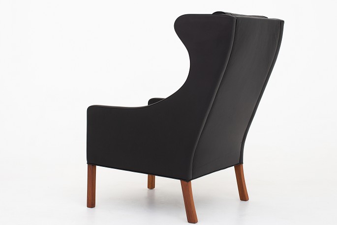 BM 2204 - Nybetrukket øreklapstol med sort Pleasure-læder. KLASSIK tilbyder polstring af stolen med stof eller læder efter eget ønske.