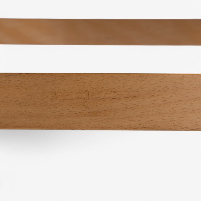 Tidlig udgave af 'Eva' lænestol i patineret bøg m. flettede gjorde i natur kernelæder. Mærket fra producent.
