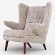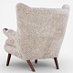 AP 19 - Newly upholstered Teddy Bear chair in lambskin (color: Moonlight) with stool.