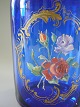 Flot koboltblå Flaske/Karaffel med bemaling og forgyldt træprop H: 27,5 cm med prop 32 cm. Emne nummer: 11581