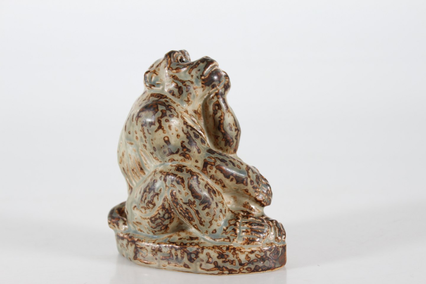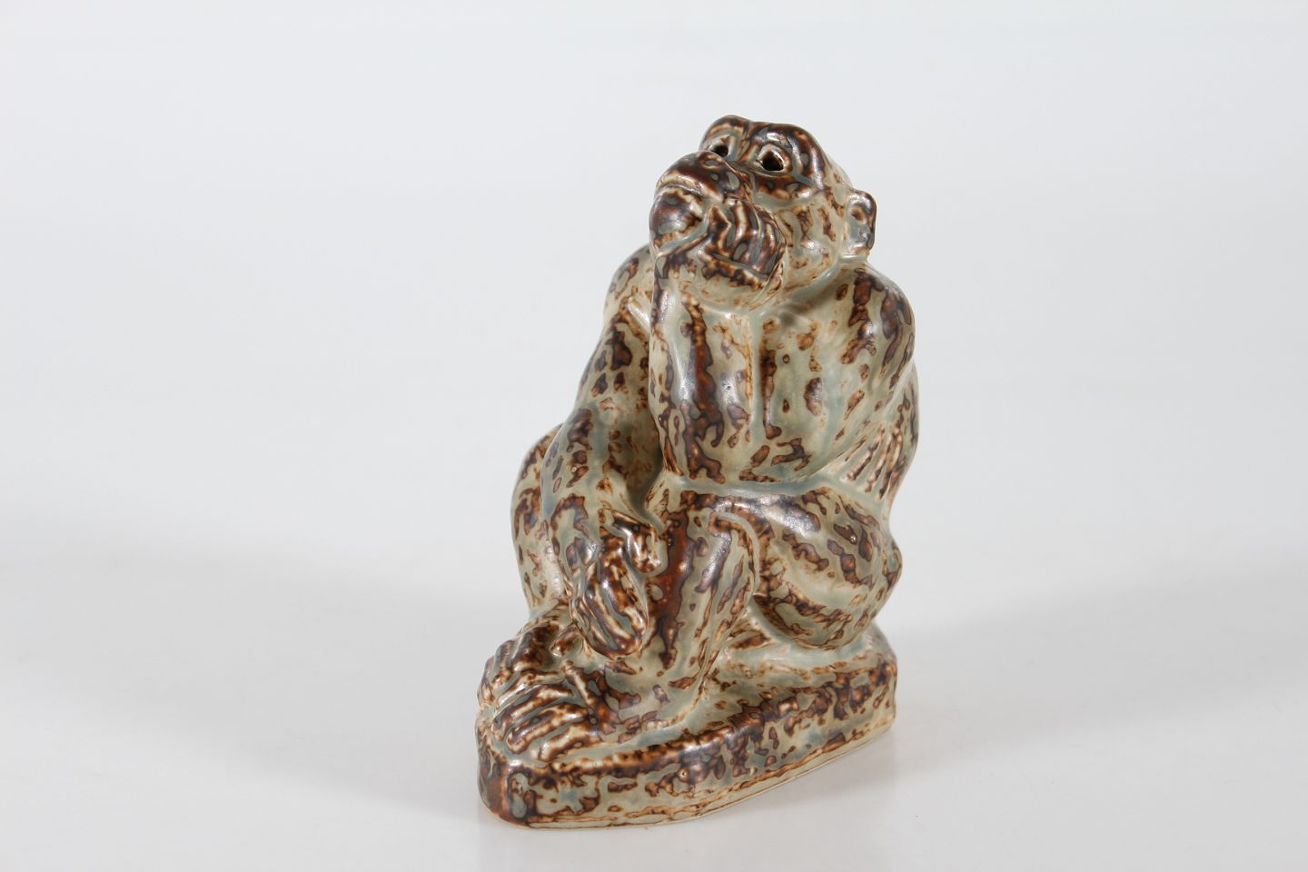 Royal Copenhagen Stentøj Knud Kyhn (1880-1969) Grublende abe nr. 21411 Fremstillet af stentøj dekoreret med sungglasur Indridset KK for Knud Kyhn Med stempel fra 1961 Højde 15 cm Fin fejlfri 1 sortering