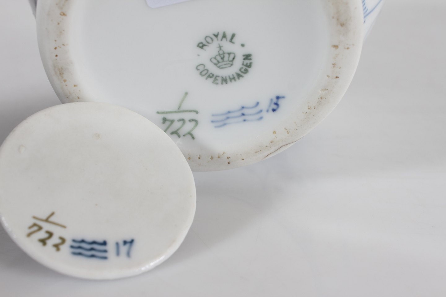 Royal Copenhagen Musselmalet Halvblonde Chokoladekande nr. 1/722 Med stempel fra perioden 1894-1922 Højde 23 cm 1. sortering fin stand uden skår