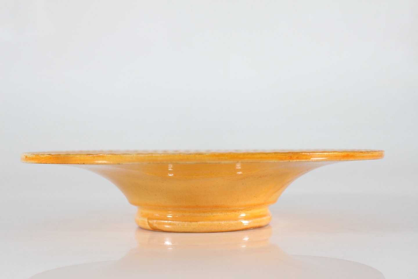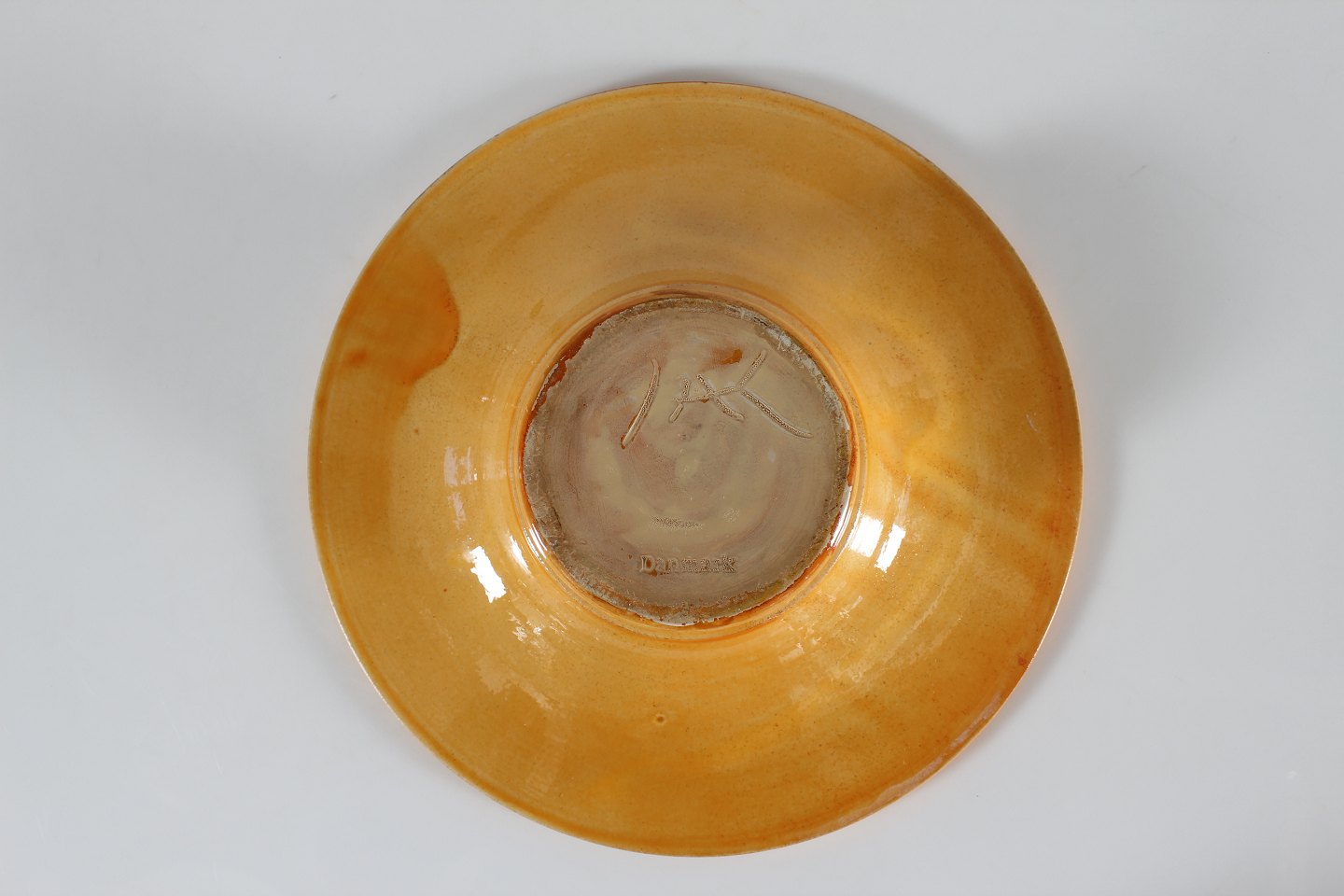 Herman A. Kähler Svend Hammershøi præstekravefad dekoreret med gul uranglasur cirka 1930'erne Sign. HAK + Danmark Højde 6 cm Diameter 30 cm Fin stand uden skår og revner