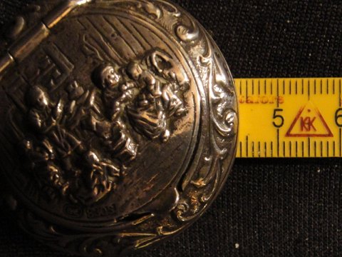 Diameter: 4,5 cm , højde: 1,5 cm.