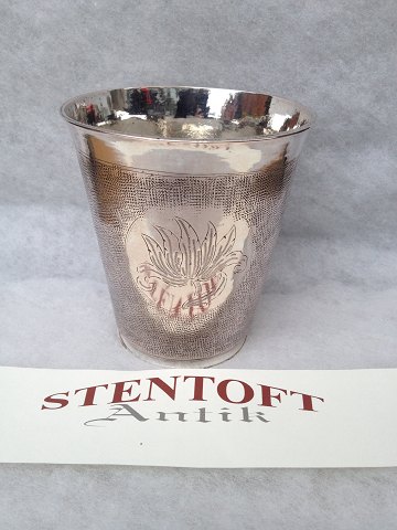 Højde: 9,8 cm , Bredde: 9 cm i top , bredde: 5,9 cm i Bunde.