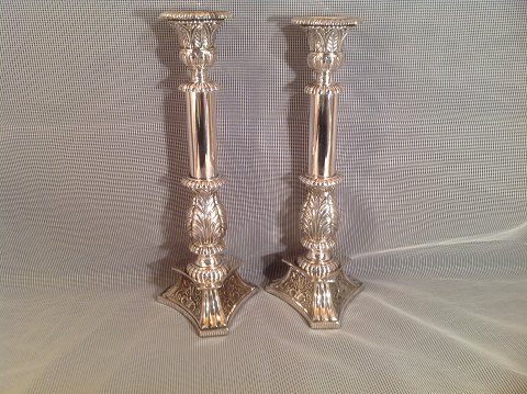 Fremstillede disse stager i 1941, det er et par pragtfulde tre tårnet stager, udformet med trekantet fod med udsmykning og balusterformet stamme og udformet som kapitæl med blomsterformet papyrus i lyshuset er der lysmanchet.