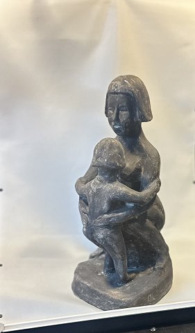 En rørende og solid figur i uglaseret stentøj forestilleende en mor i tæt favntag med sit barn .