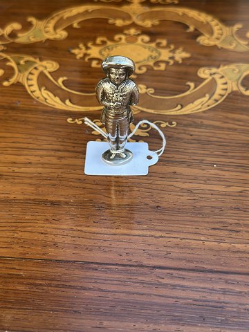 Vintage nålebeholder i sølv , formen en lille figur ( mand i folkedragt , fra 1800 tallet H 5 cm B 1,30 cm
