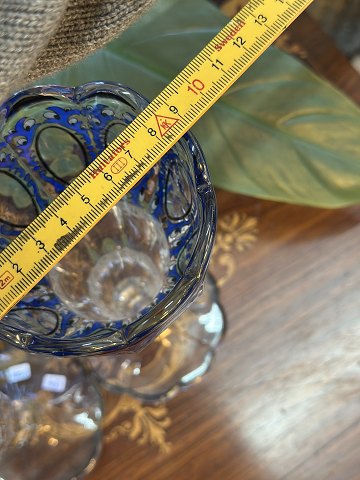 Bohemia crystal vase, cover vase in cobalt blue glass, cut and decorated with gold and enamel paint, from ca 1950-1970. nice and neat condition
