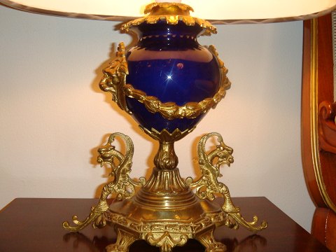 Franske bordlamper Bronze og serversporcelaan i koboltblaa