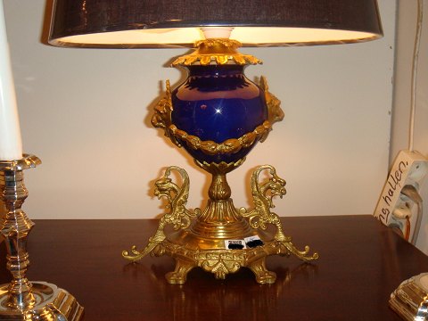 Franske bordlamper Bronze og serversporcelaan i koboltblaa