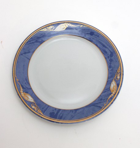 Royal Copenhagen, Blå Magnolia. Blå marmoreret bort dekoreret med gylden blomsterknop. Designet af Flemming Eskildsen.