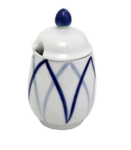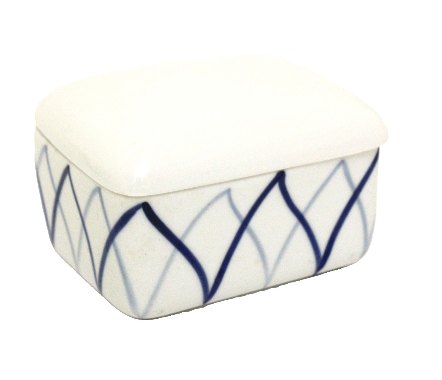Dan-ild Lyngby, Harlekin/Blå flamme. Smørboks, smørbox. Design Axel Brüel i 1958. Ildfast porcelæn blev solgt under sloganet fra ild til bord.