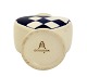 Aluminia, Blåt Julehjerte med gule kanter. Flot stand med få overfladekrakeleringer under kraven og manglende gul farve på kanten. Designet af Hans Henrik Hansen i 1944. Højde 7,7 cm. Bredde 7,6 cm. Pris: 1300 kr.