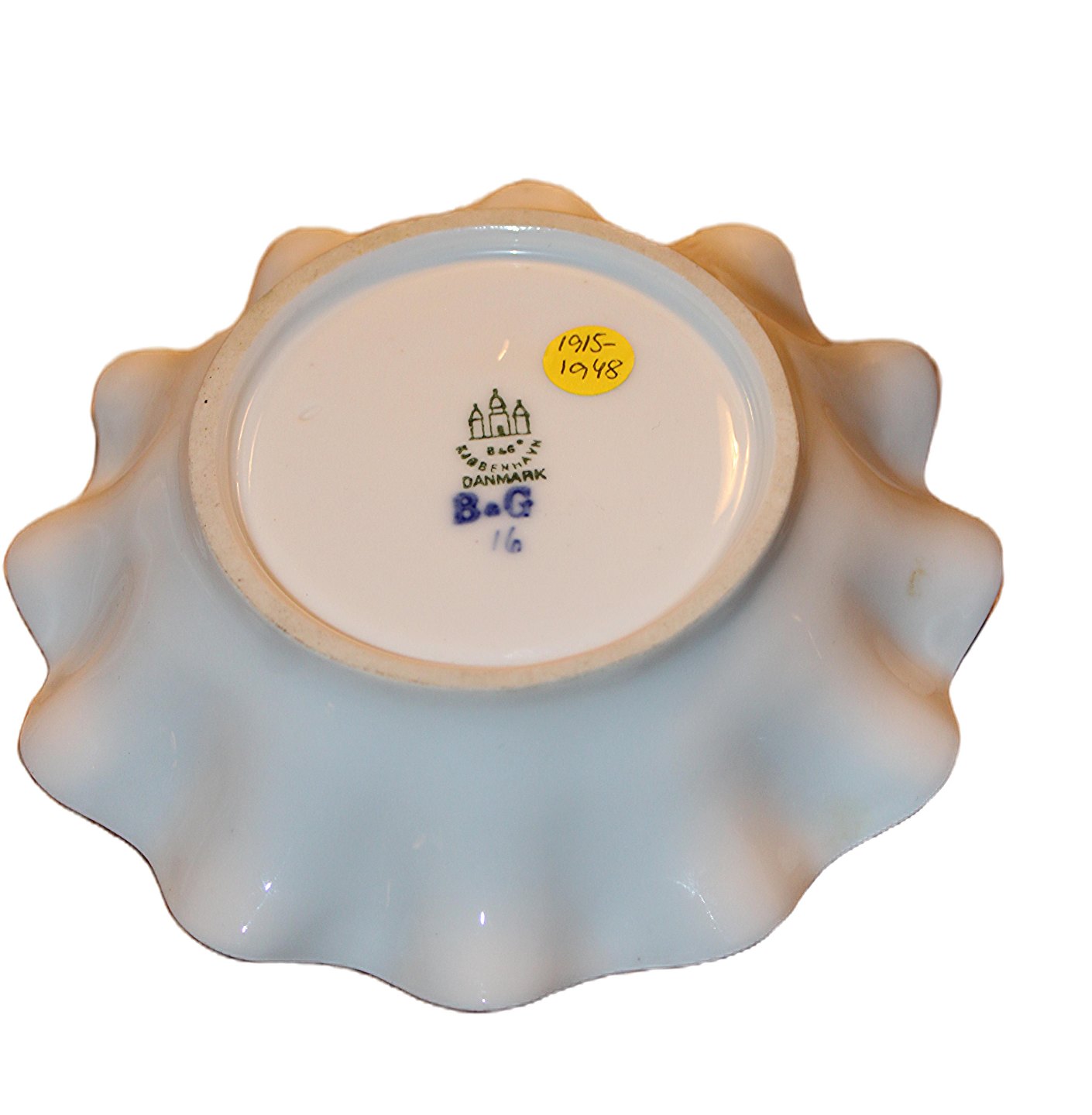 Bing & Grøndahl, Empire, Lille skål med bølget kant. Produceret 1915-1948. Diameter 14,5 cm. Højde 3 cm. I sortering med den tids glasurfejl og lidt brugsspor. Pris: SOLGT