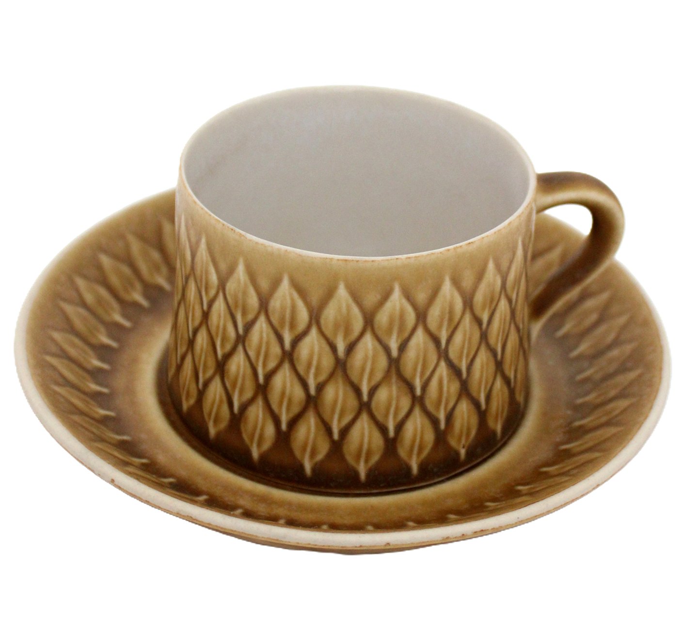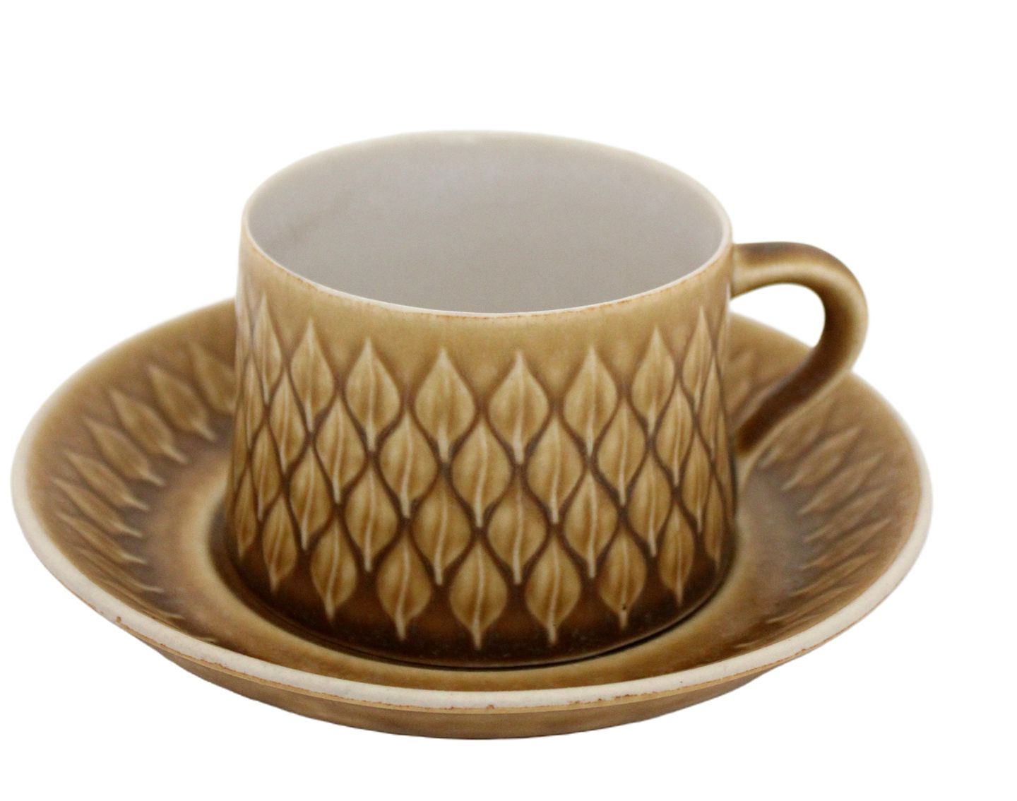 Kronjyden/Nissen/Bing & Grøndahl, Relief Tekop med underkop. Designet af Jens Harald Quistgaard. Højde 6 cm. Diameter 7,5 cm.