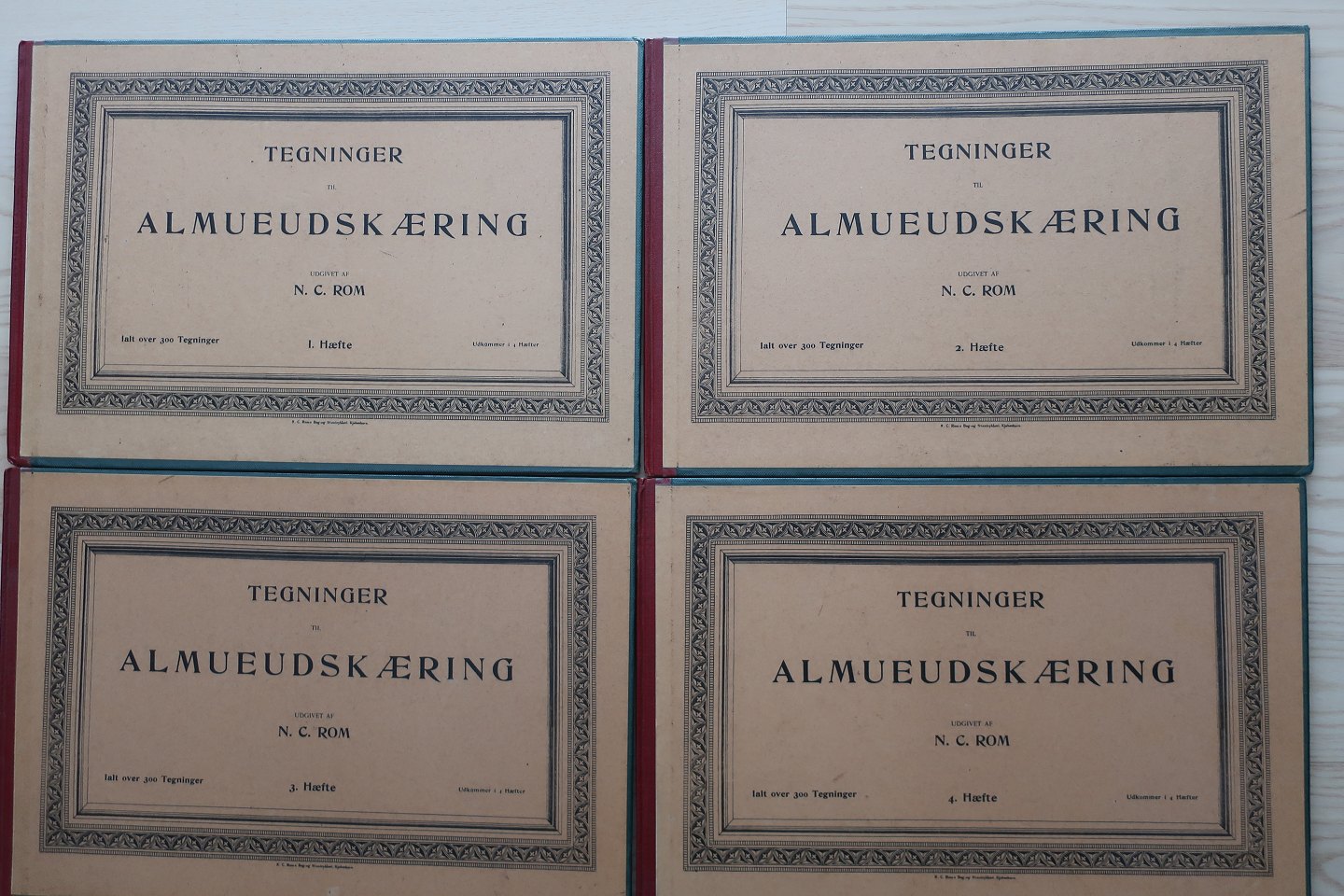 Tegninger til almueudskæring Udgivet N. C. Rom Bog og Stentrykkeri Bind 1+2+3+4 Sælges samlet som sæt hard Bach In very good condition Articleno: ØR1