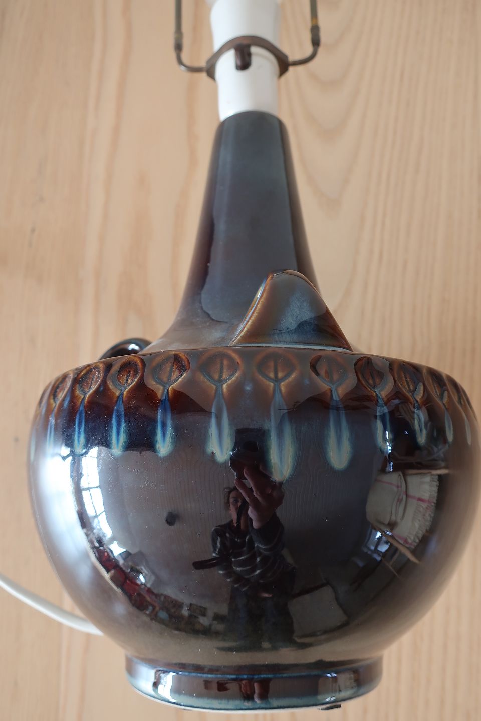 Smuk blå glasur med brunlig dekoration (typisk Søholm-blå)