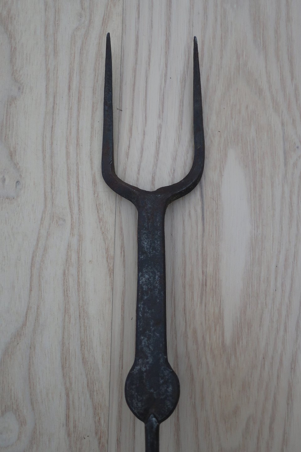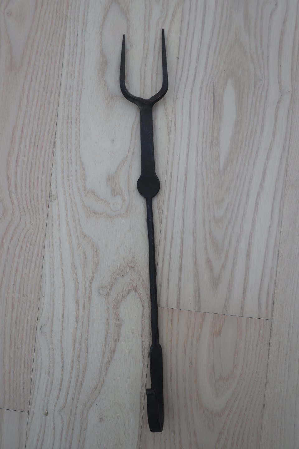 Antik stege gaffel Perfekt ved grillen, og endnu bedre ved bålet L: 45cm Fra ca 1850 I god stand Varenr.: 2-52521