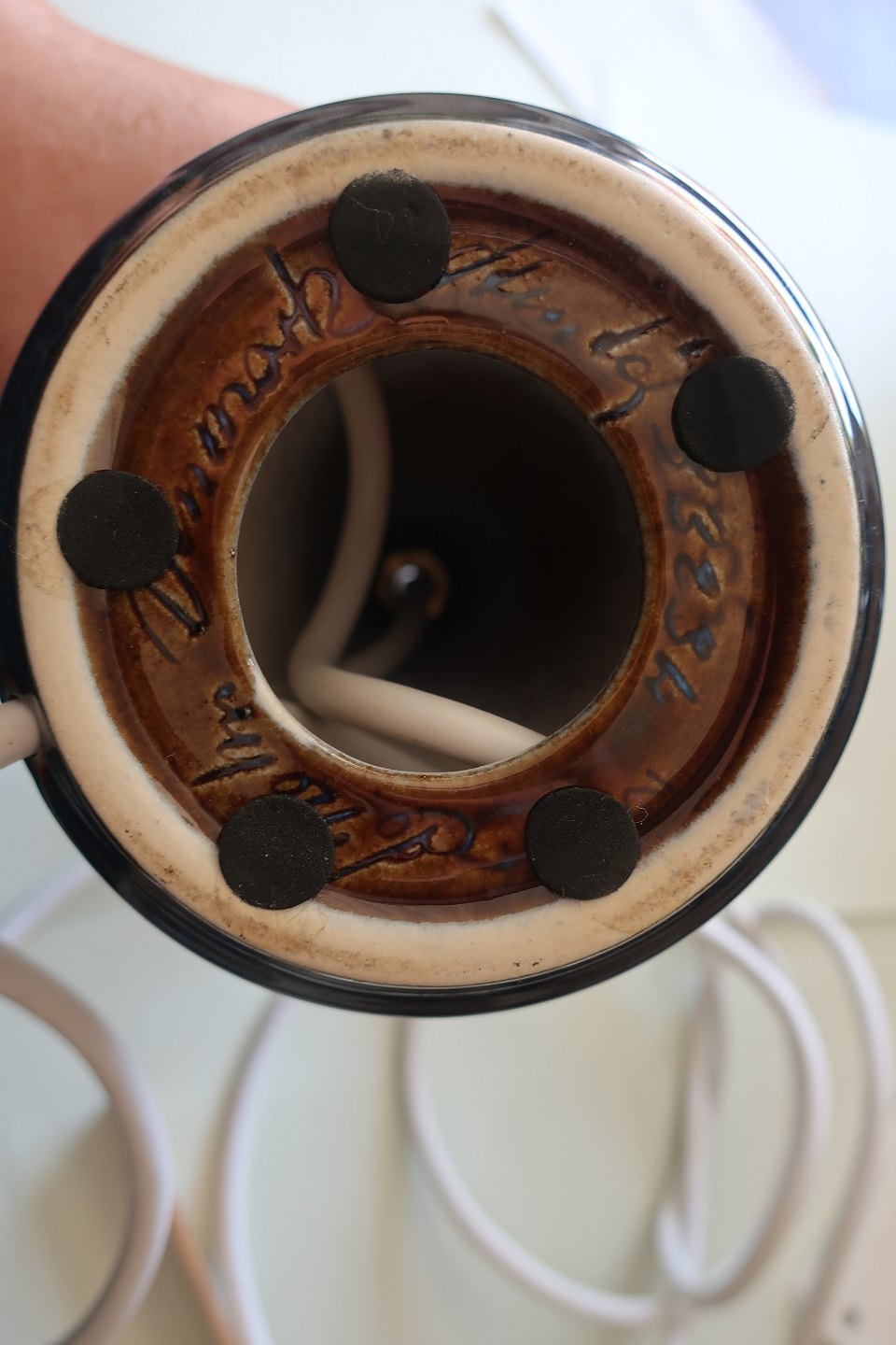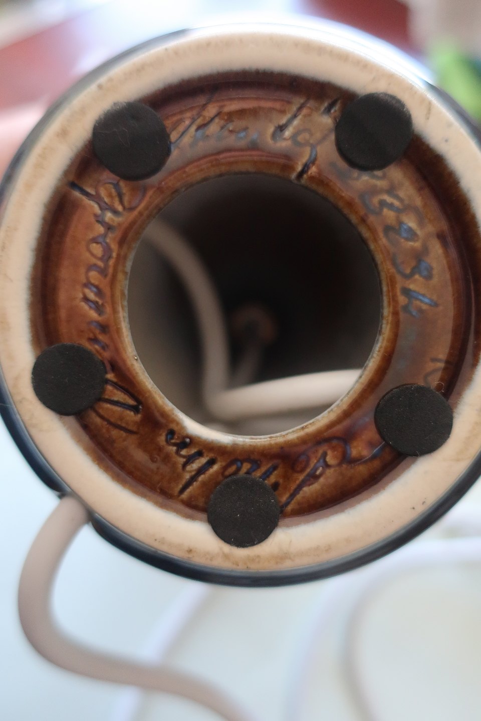 Søholm lampe Søholm Stentøj Bornholm Denmark Design: Einar Johansen Stemplet Fra 1960'erne H: 14cm Diam: 8cm i bunden Bemærk: Fatningen er løs God stand Varenr.: KM1005